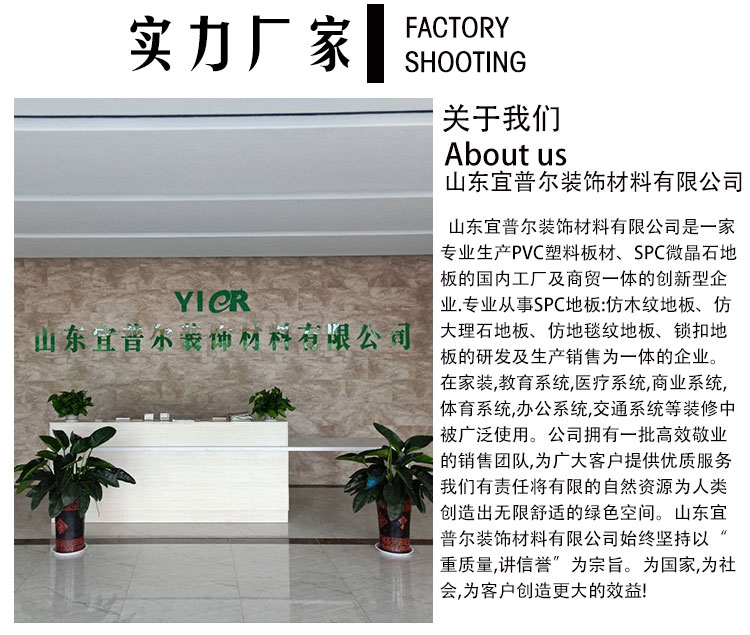 集研發(fā),生產(chǎn)及銷售于一體,公司專業(yè)生產(chǎn)SPC 全系列地板、墻板